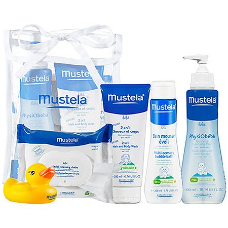 This gift set for bathtime has a collection of Mustela essentials that clean, hydrate and refresh baby's sensitive skin. For more than fifty years, Mustela has devoted itself to providing products specially designed to pamper the delicate skin of newborns, babies and children. Alcohol-free and hypoallergenic, Mustela products are used in hospital nurseries worldwide, and they're also a hit with our customers!